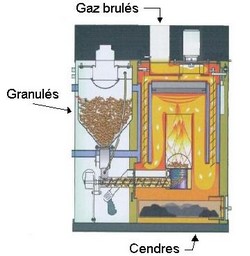 Le système de combustion est le même dans les 3 cas, l'alimentation s'effectue à partir d'un silo ou d'une réserve, géré informatiquement pour atteindre un rendement de combustion supérieur à 90%.
